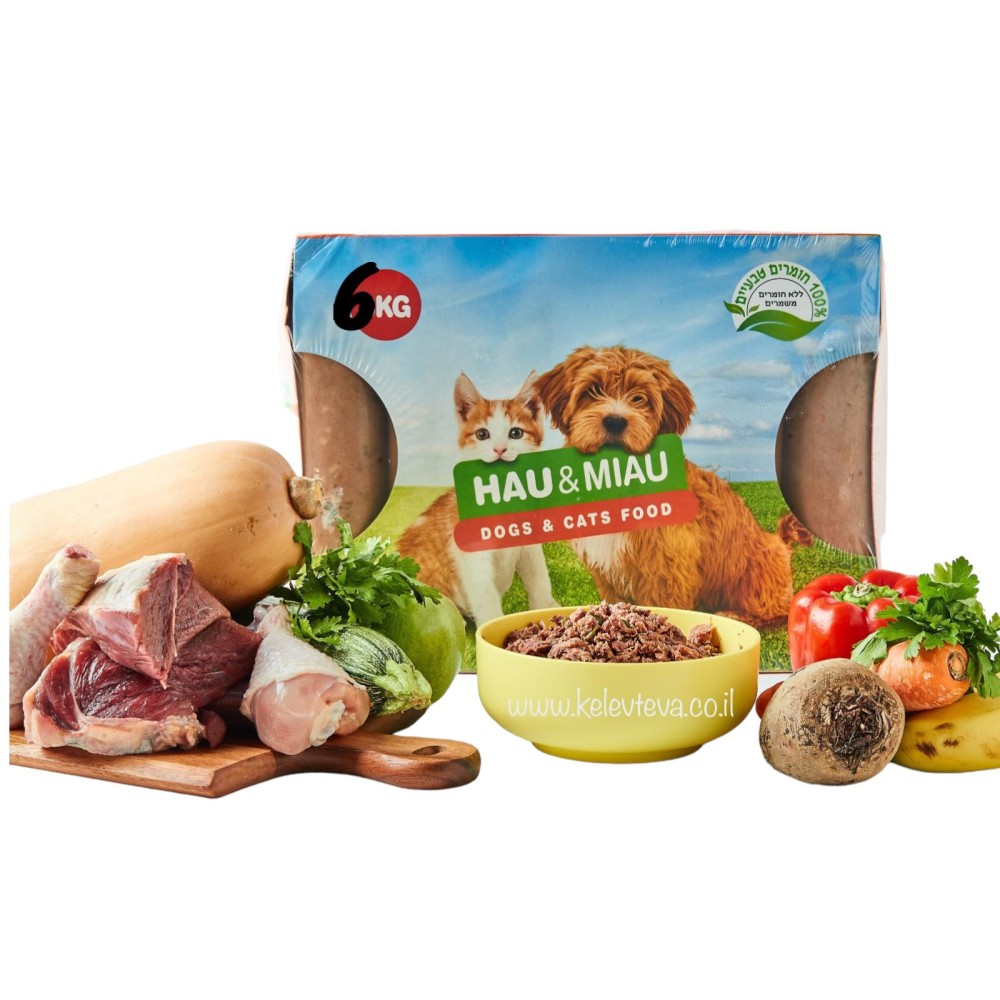 האו ומיאו תזונה טבעית לכלבים המיוצרת בארץ ומפוקחת על ידי משרד החקלאות. באוכל של האו ומיאו לכלבים ישנם רכיבים טבעיים בלבד, 100% בשר אמיתי טרי מהשוק הישראלי, ופירות וירקות.