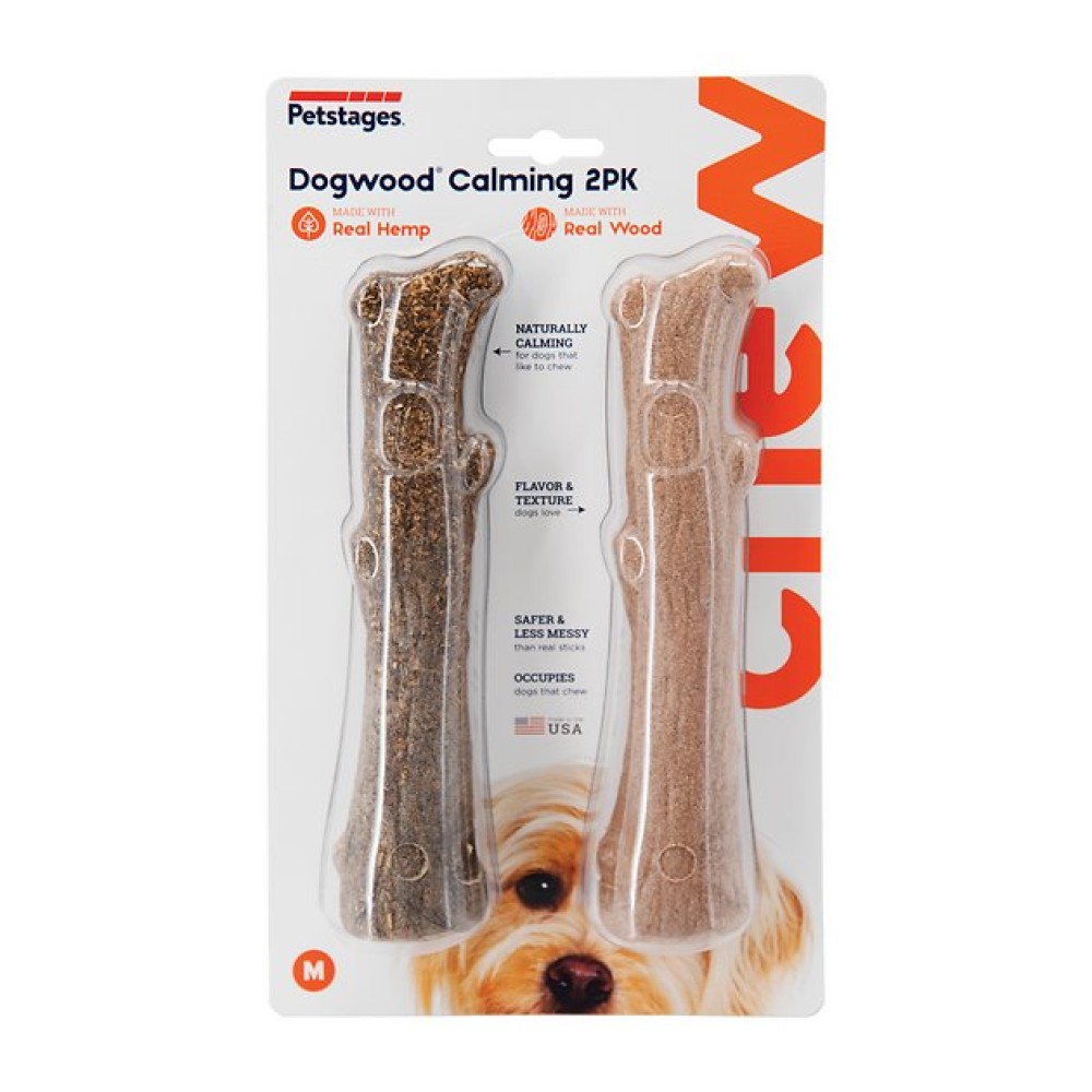 Petstages 2pk - זוג עצמות דנטליות עץ+האמפ להרגעה לכלבים בינוניים M