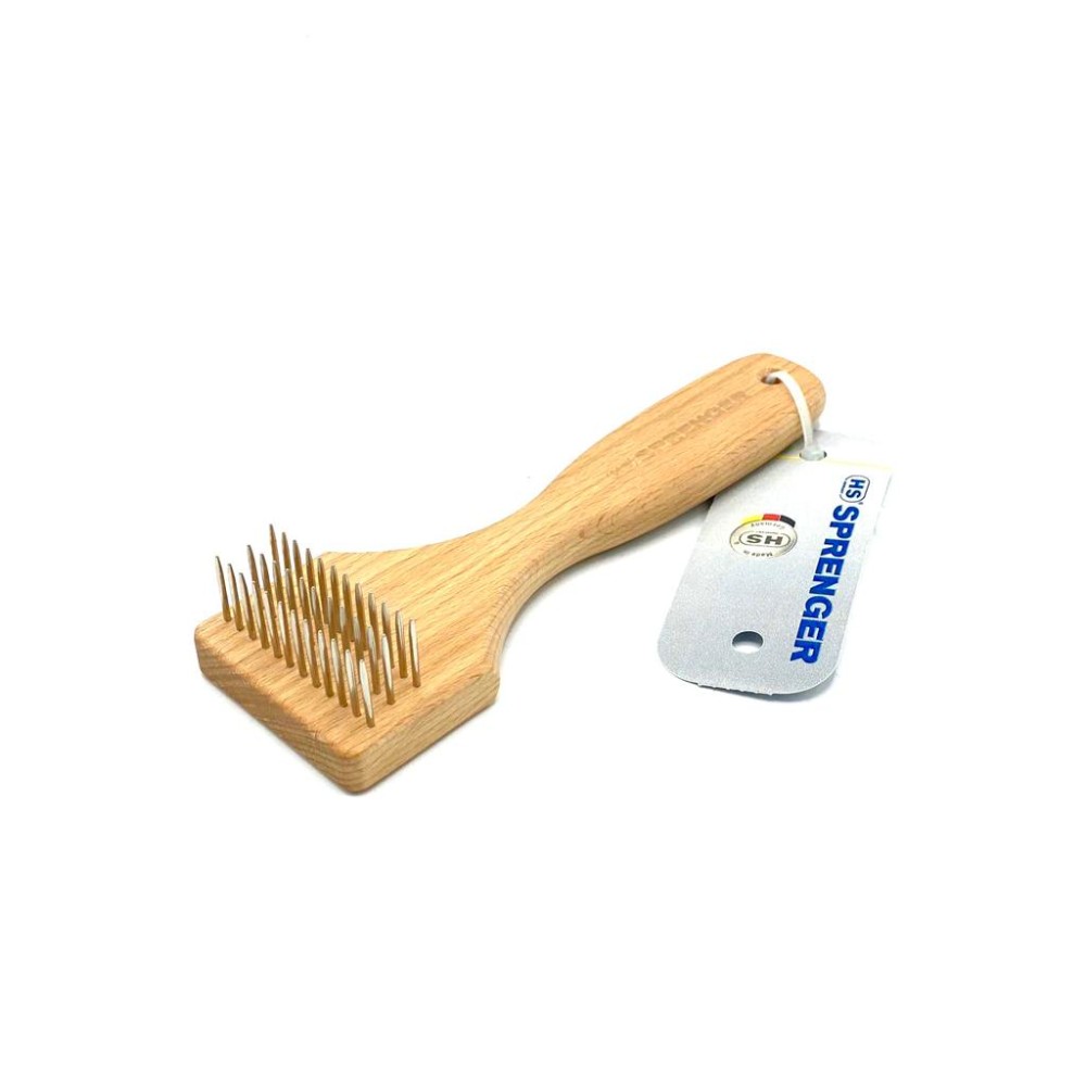המסרק עשוי מעץ אגס טבעי ועמיד מאוד ובעל להבי ברזל אל חלד שמתירים קשרים ו"ראסטות" בקלות מבלי לפצוע את עור הכלב.