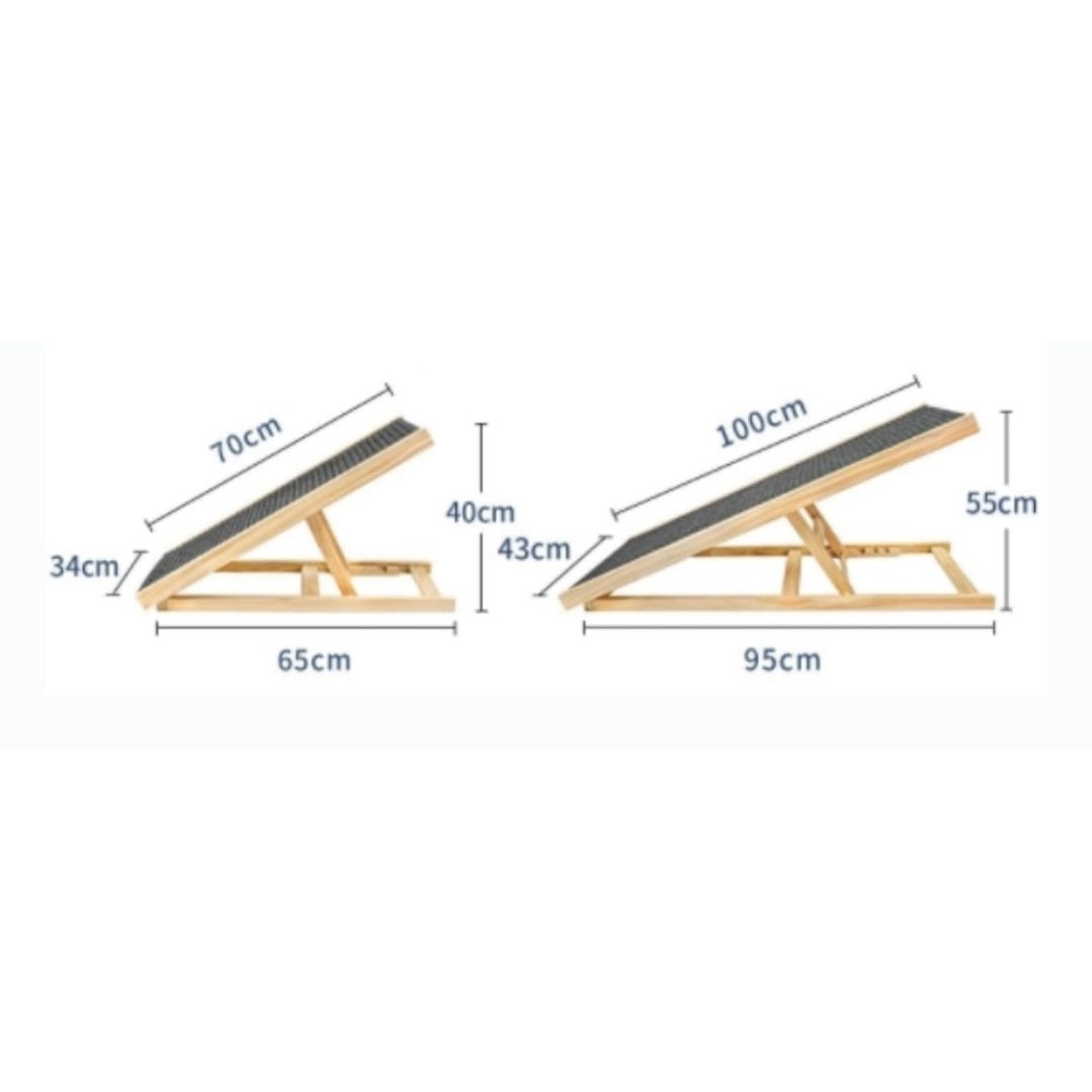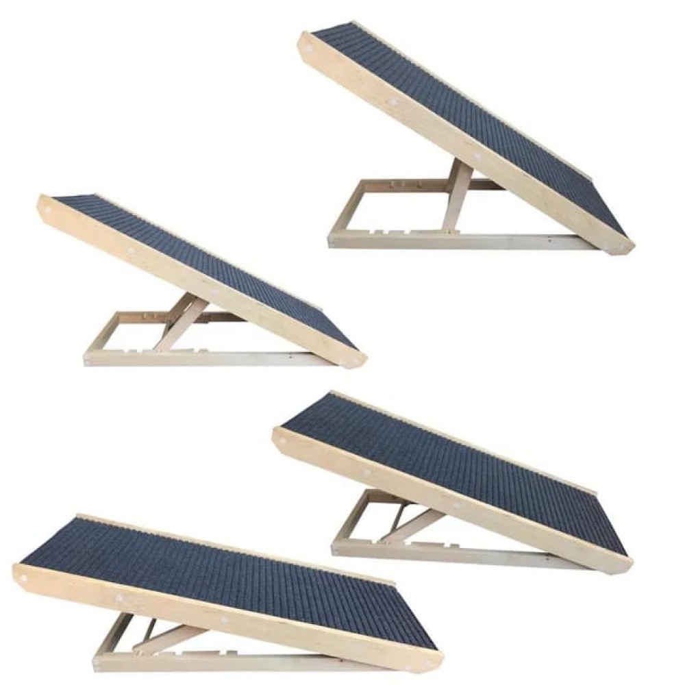 הרמפה עשוייה מעץ ומרופדת בשטיח מונע החלקה.